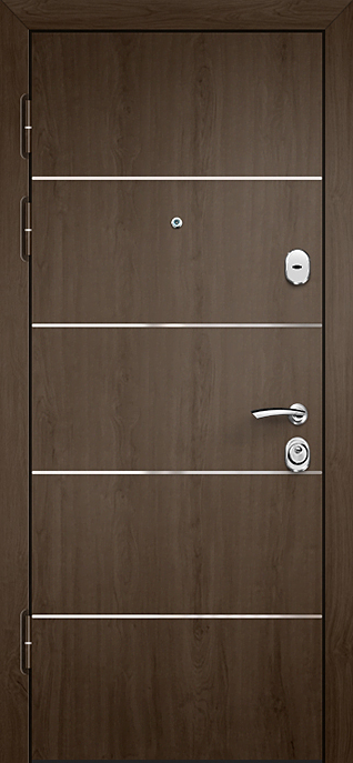 Уличная современная дверь с оцинкованным стальным полотном №8 создана для эксплуатации в условиях, где важны и надёжность, и защита от капризов погоды. Оцинковка надёжно препятствует образованию коррозии, благодаря чему дверь не боится влаги и резких температурных перепадов, сохраняя аккуратный внешний вид долгие годы. Конструкция собрана на прочном каркасе из профильной трубы с холоднокатаным листом стали толщиной 2 мм и усилена рёбрами жёсткости, что обеспечивает высокий уровень прочности. Для дополнительной безопасности установлены противосъёмные штыри и два замка российского производства — сувальдный «Просам» и цилиндровый «Мосрентген». Два контура уплотнения с резиновыми вставками защищают от сквозняков и пыли, хотя терморазрыв в модели отсутствует, что делает её более рациональной для тёплых тамбуров, подъездов и офисов. Возможность добавить зеркало, стеклопакет или кованые элементы позволяет превратить эту дверь из строгой защитницы в эффектный архитектурный акцент.